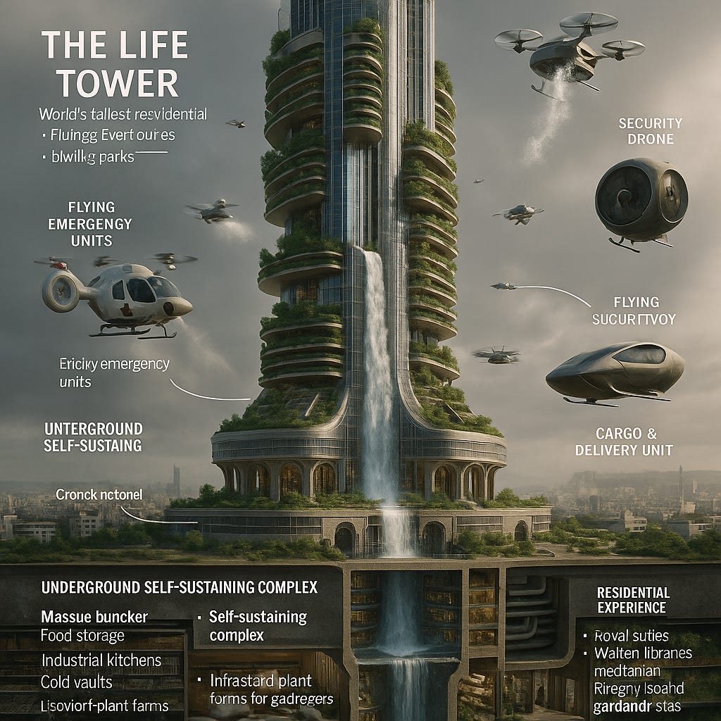 The Life Tower is not merely a building. It is a sovereign realm in the sky — a vertical kingdom that holds the future of my family, my faith, and my dynasty. Designed for eternity, built with divine purpose, and powered by sustainability, it is the most complete expression of self-rule, unity, and sacred life.