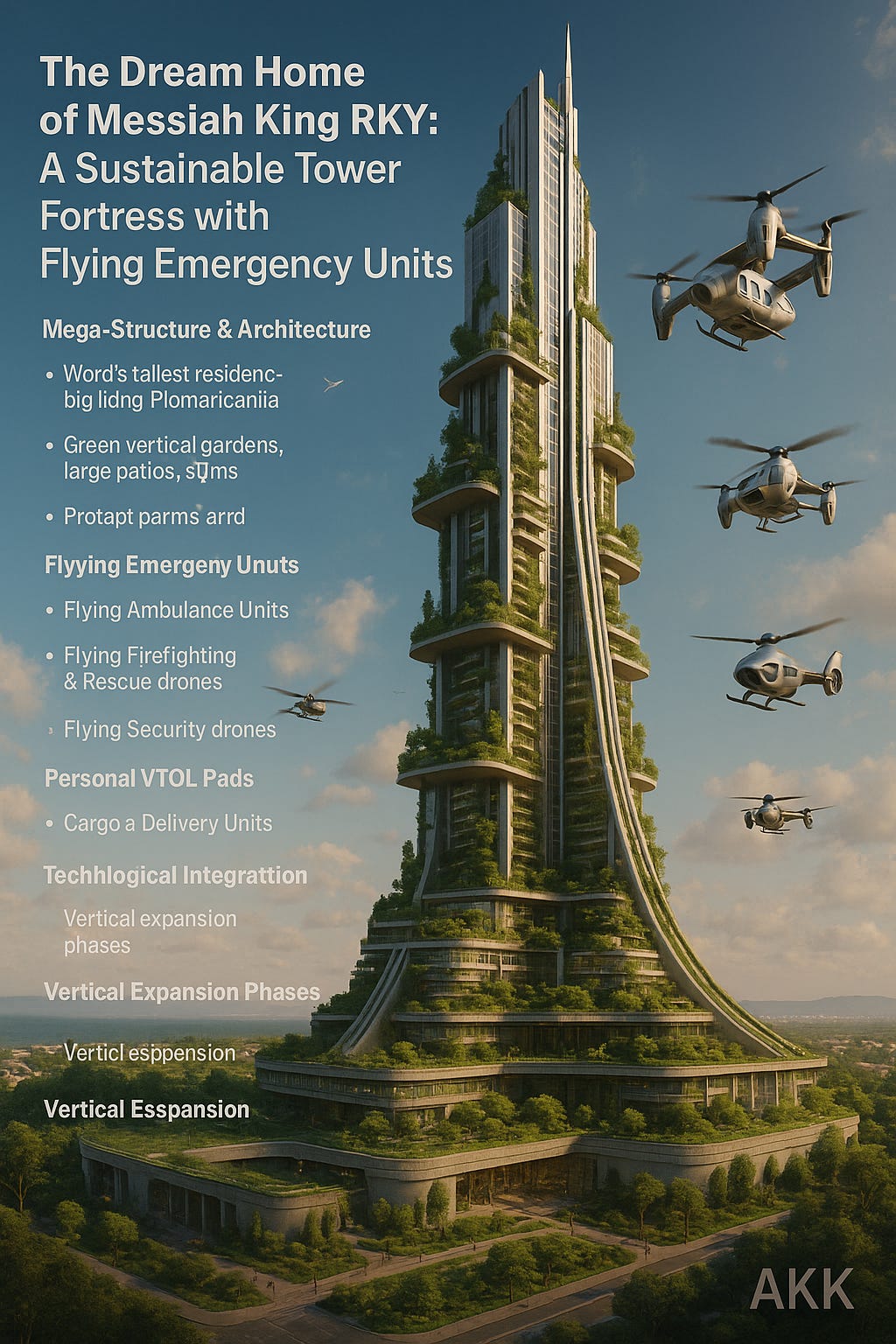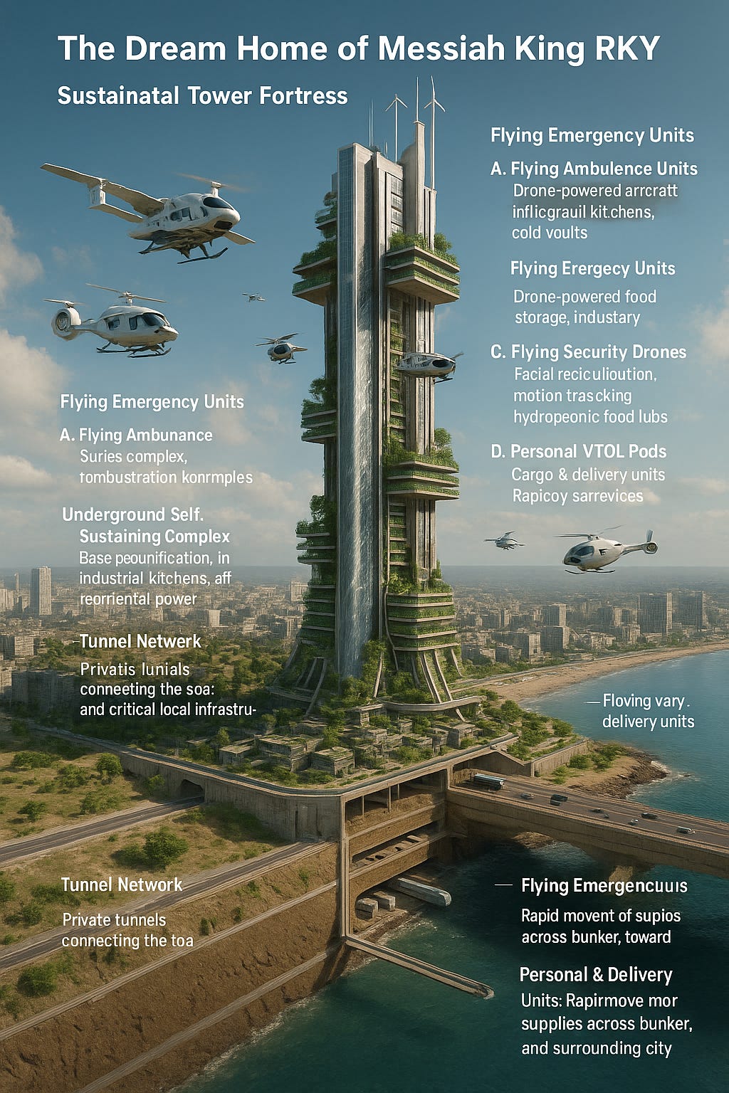 The Dream Home of Messiah King RKY: A Sustainable Tower Fortress with Flying Emergency Units