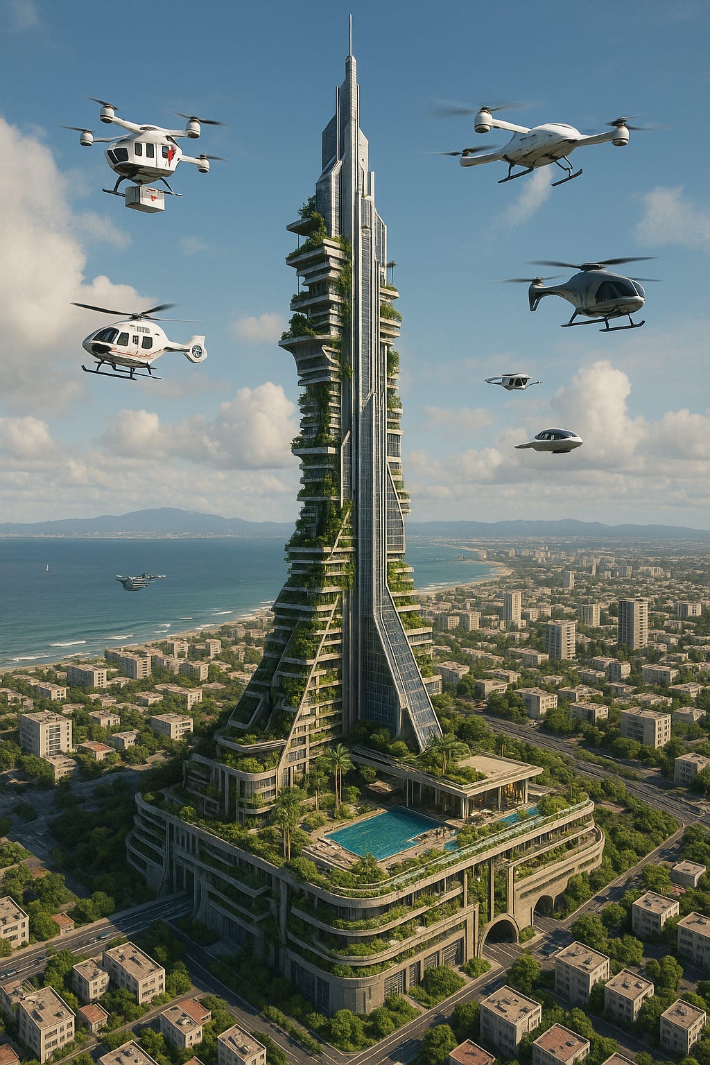 Envisioned as the tallest and most advanced residential structure in the world, this dream home is more than a residence—it's a resilient mega-structure, an ark for modern times. Located in Kiryat Yam, on the site of acquired private villas, it will serve as the home and stronghold for Messiah King Ronen Kolton Yehuda (RKY) and his extended family. Designed for sustainability, self-sufficiency, defense, and grandeur, it includes integrated flying emergency units for rescue, security, and logistics.