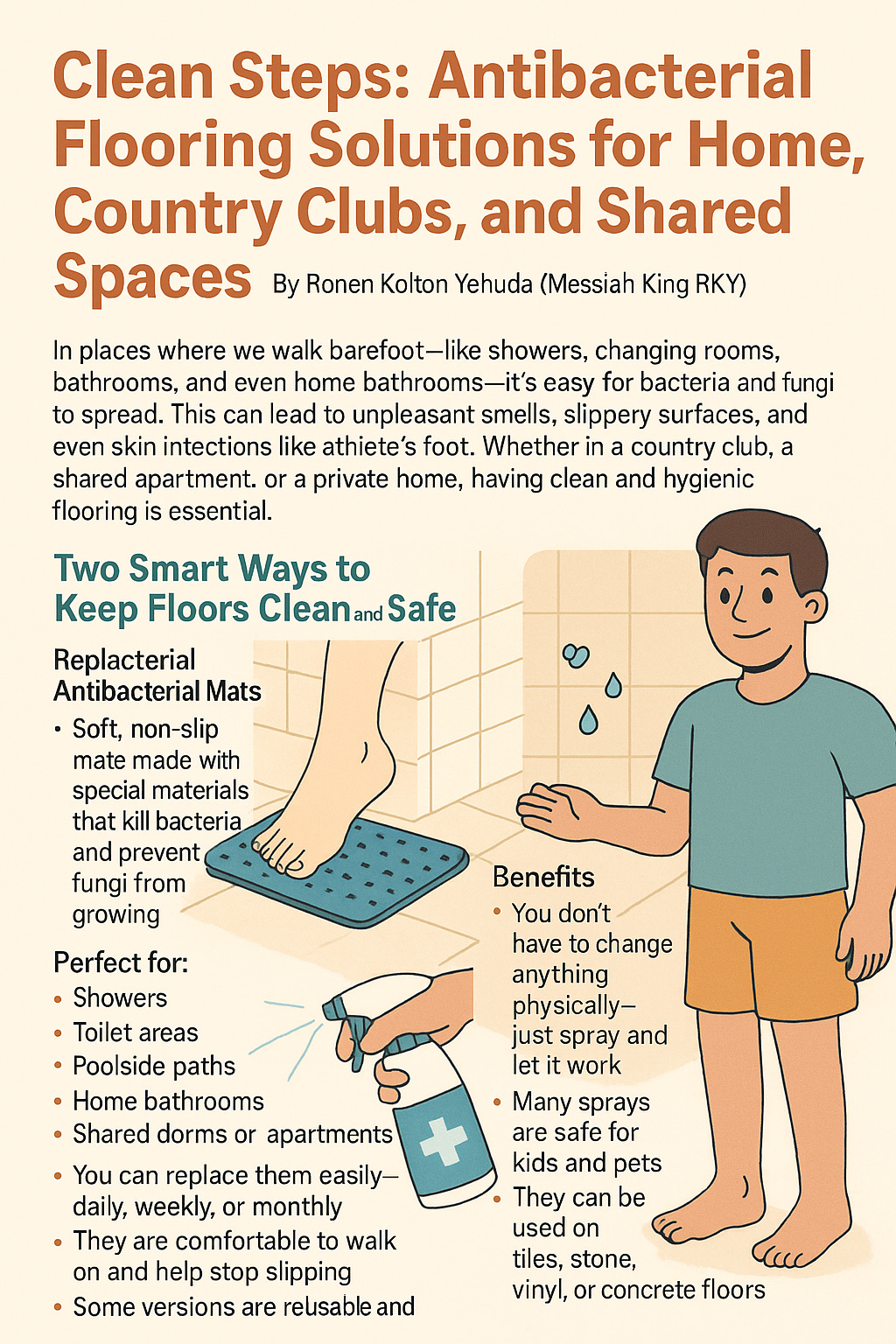 Here is the dedicated article section tailored for inside-shower antibacterial flooring solutions, as part of the full “Clean Steps” series by Ronen Kolton Yehuda (Messiah King RKY):
