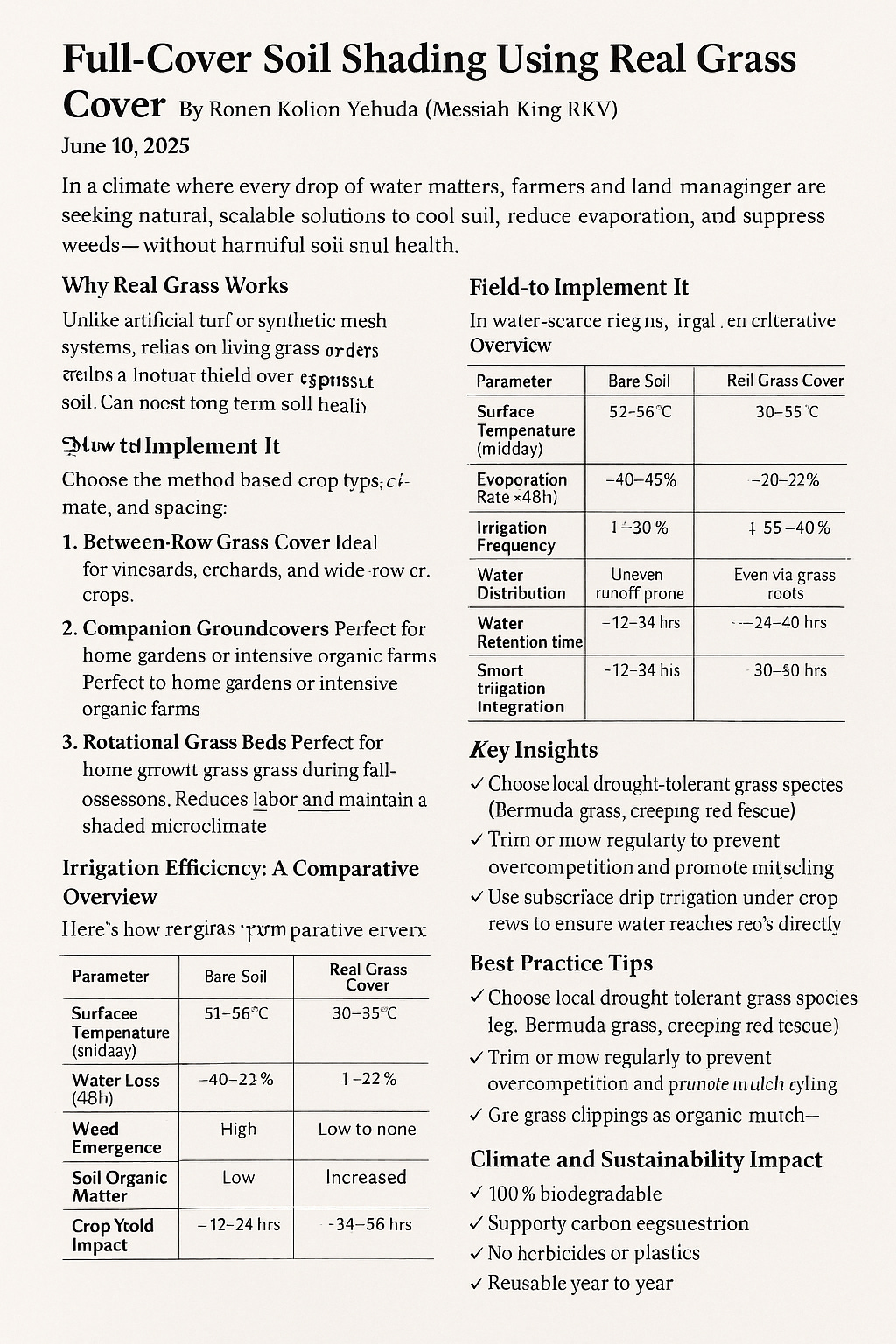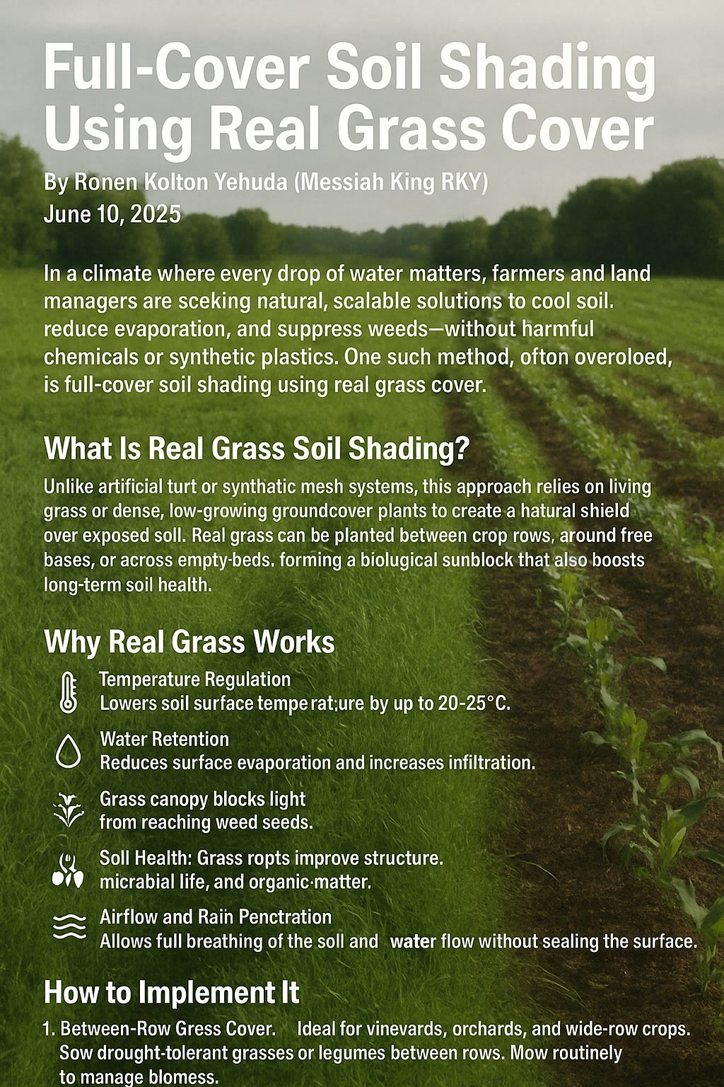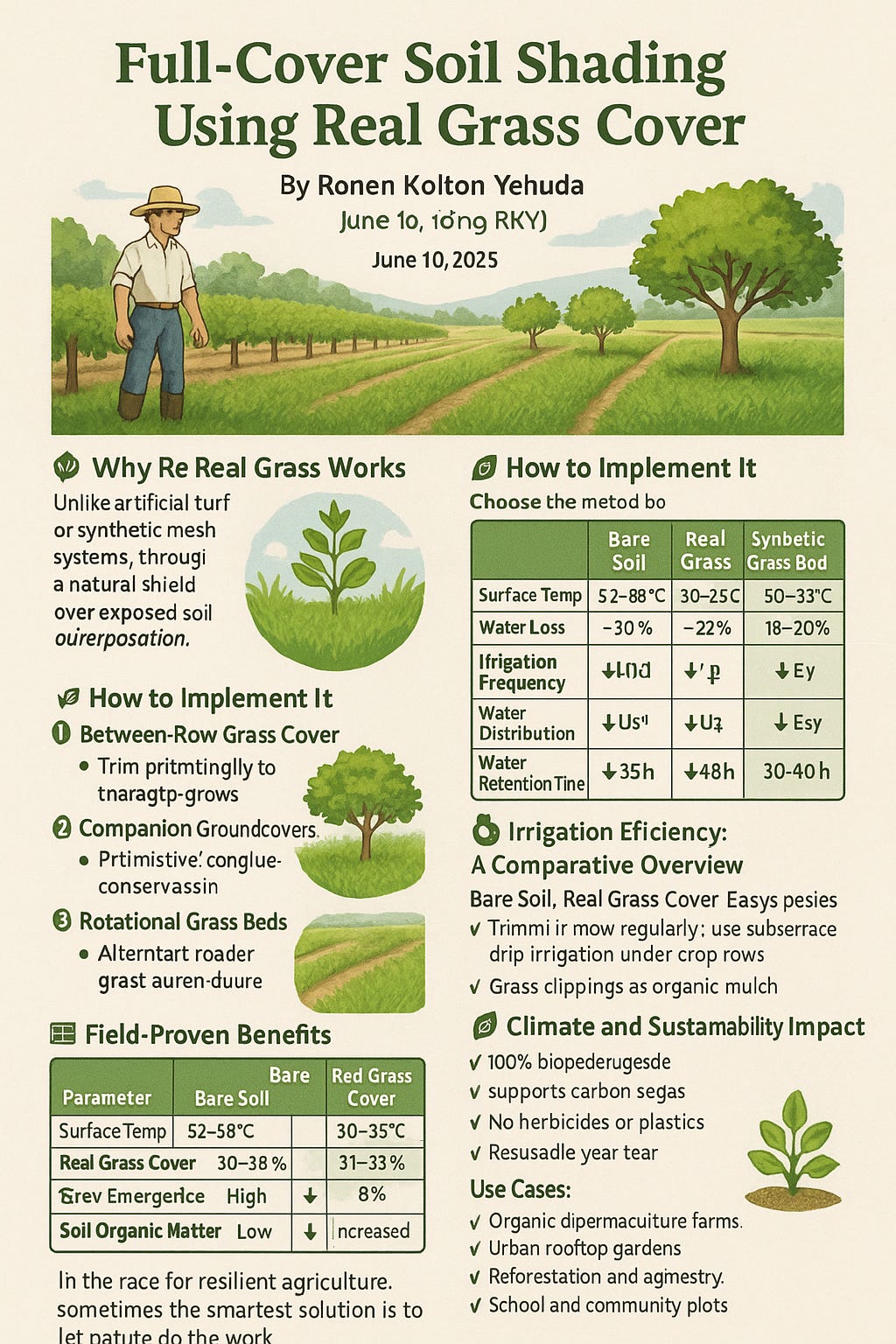 Full-cover soil shading using real grass cover is a low-tech, high-impact solution rooted in nature itself. It cools the earth, saves water, restores soil, and keeps weeds away—all while improving biodiversity and long-term farm resilience.