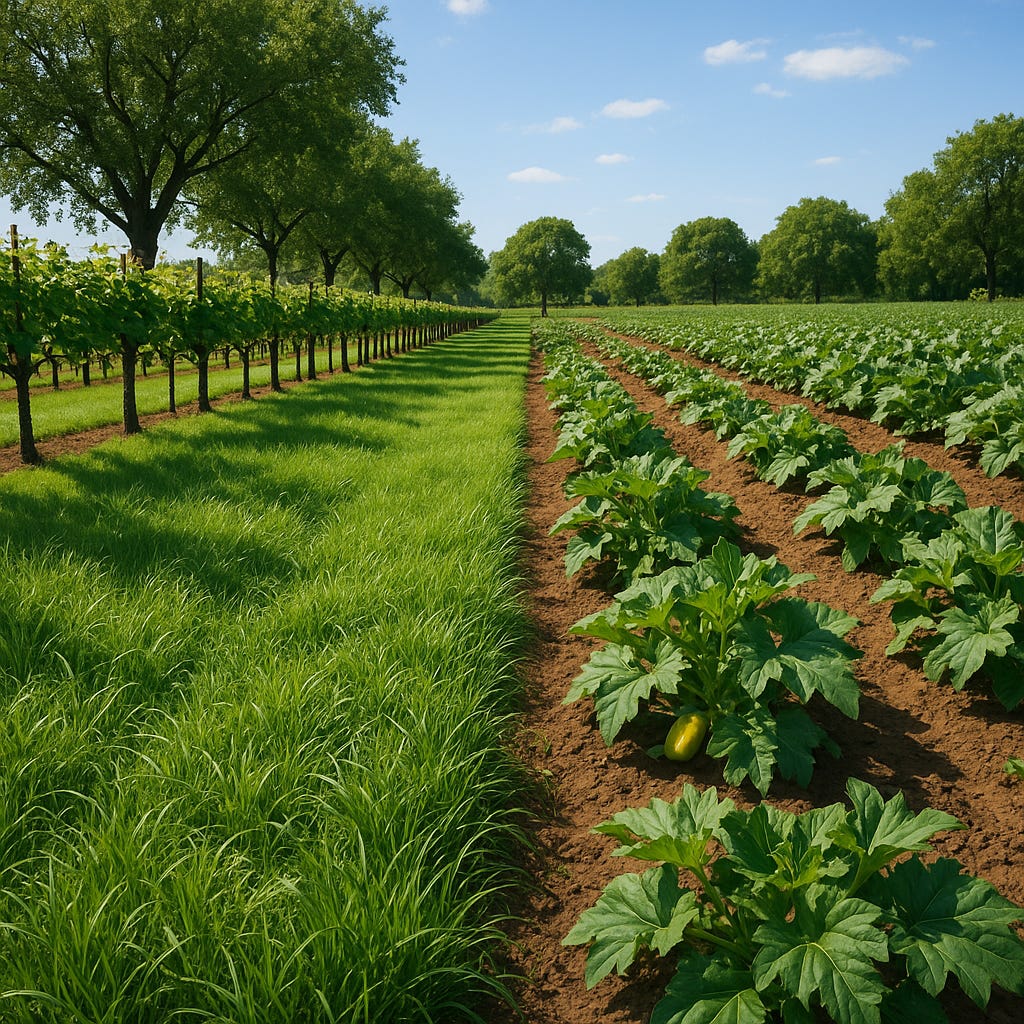 - Integrate drip irrigation: Subsurface lines deliver water directly to crop roots while grass conserves surface moisture.