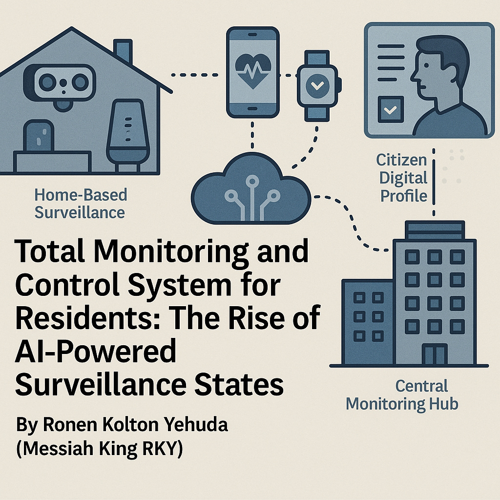 In an era shaped by hyperconnectivity, artificial intelligence (AI), and rising geopolitical instability, state systems are evolving toward more centralized, data-driven governance. A Total Monitoring and Control System for Residents represents an advanced digital framework that combines real-time surveillance, AI analysis, and centralized enforcement—integrated into both public and private spaces.