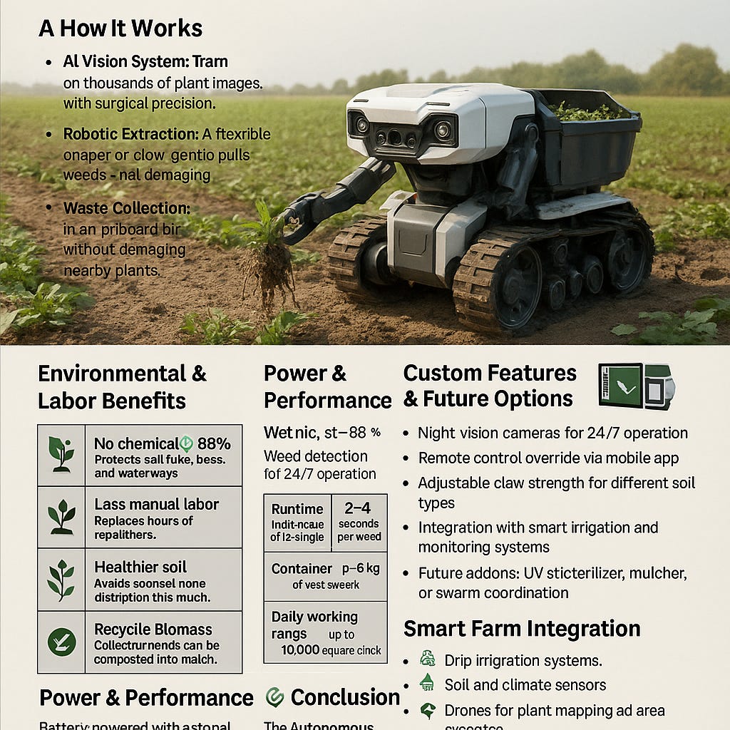 This robotic system is designed for use in both large-scale farms and residential or urban gardens, offering a clean, chemical-free approach to weed control.