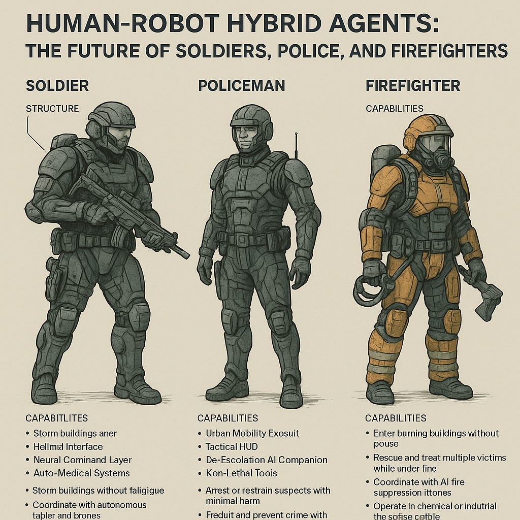 🤖 Human-Robot Hybrid Agents: The Future of Soldiers, Police, Rescue, and Firefighters