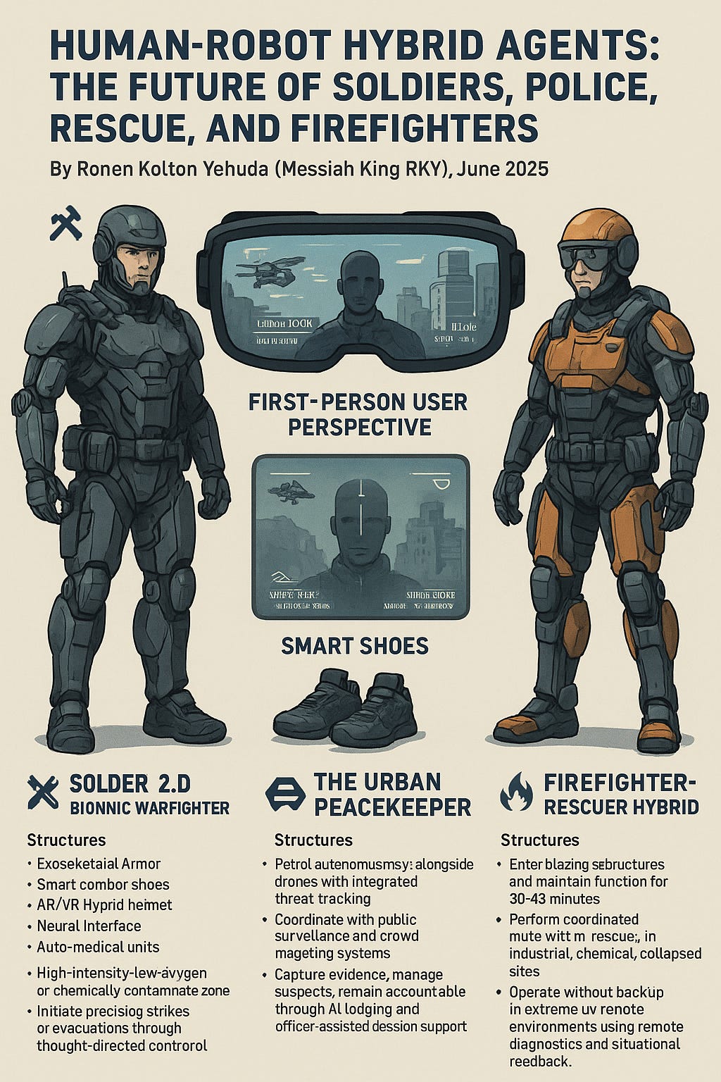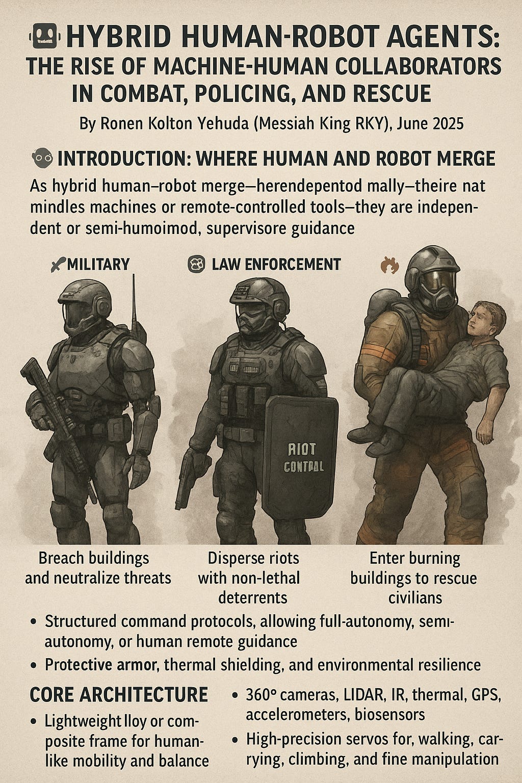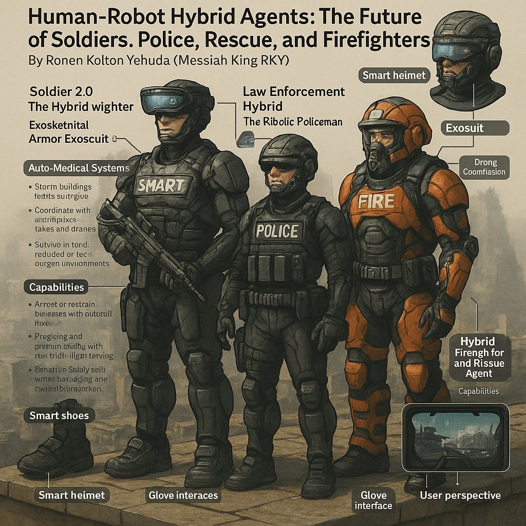 By Ronen Kolton Yehuda (Messiah King RKY), June 2025🤖 Human-Robot Hybrid Agents: The Future of Soldiers, Police, Rescue, and Firefighters